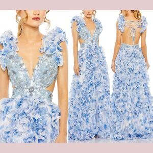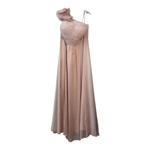 Mac Duggal Pink Floral Applique Long Sleeve Illusion Gown Dress Size 8 NWT
