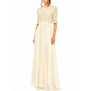 A timeless gown blending modern romance and classic glamour. Perfect for mother of the bride, evening wear, prom, or any elegant occasion.