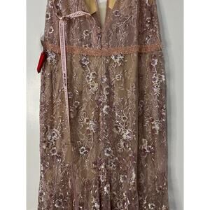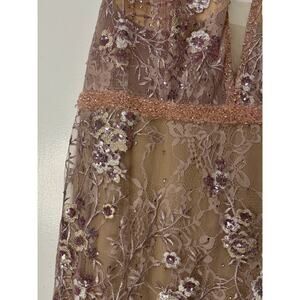 Mac Duggal Pink Floral Embellished Sleeveless Plunge Neck Gown - New w/ Tags