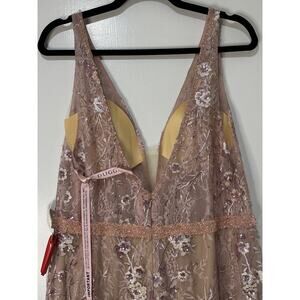 Mac Duggal Pink Floral Embellished Sleeveless Plunge Neck Gown Size 14 NWT 67481