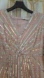 Elegant pink gown with shimmering sequins. Features a V-neck and flowing sleeves. Ideal for special events.