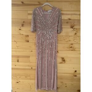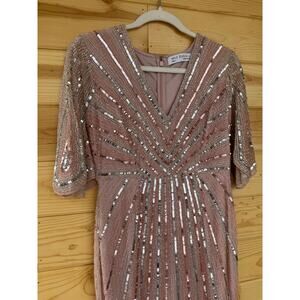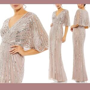 Mac Duggal Pink Sequined V Neck Cape Sleeve Gown Size 4 Style 93583