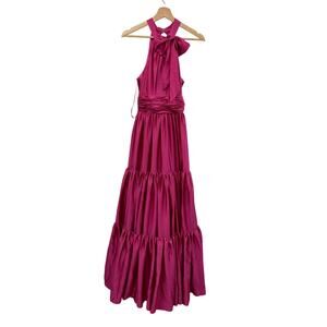 Mac Duggal Pink Tiered Ruffle Halter Gown