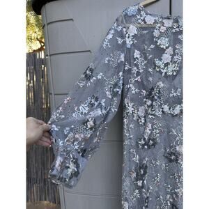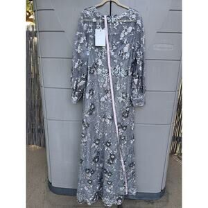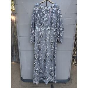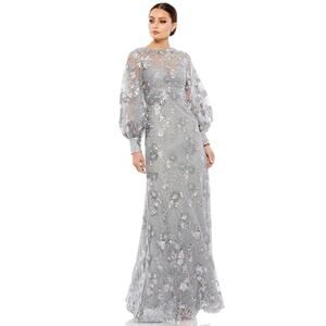 Mac Duggal Platinum Gray Sequin Floral Embroidered Long Sleeve Gown Sz 18 Formal