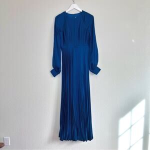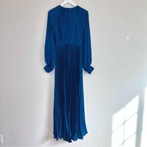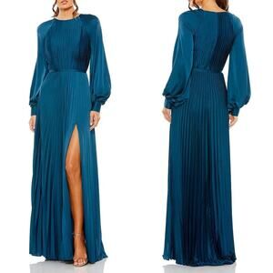 Mac Duggal Pleated High Neck Raglan Long Sleeve Side Slit Gown Size 2