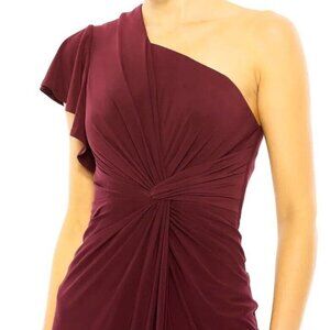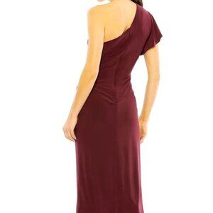 Mac Duggal Plum Purple One-Shoulder Jersey Midi Dress