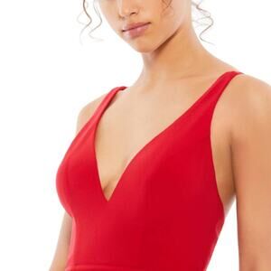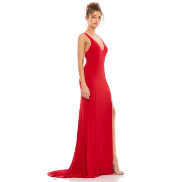 Mac Duggal Plunge Neck High Slit Gown in Red NWT Size 2