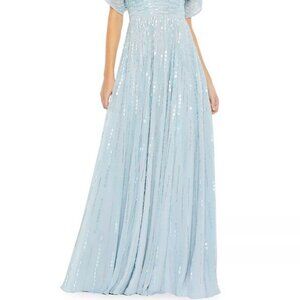 Mac Duggal Powder Blue V-Neck Beaded Gown