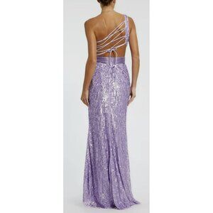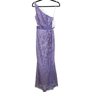 Mac Duggal Purple Sequined One Shoulder Lace Up Gown Dress Sz 0 NWT