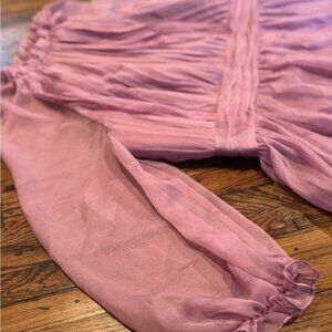 Mac Duggal Purple Smocked Chiffon Illusion Tiered Gown Size 16