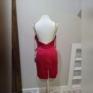 Mac Duggal RHINESTONE STRAP SATIN MINI DRESS NWOT size 12 (55691) Candy Pink