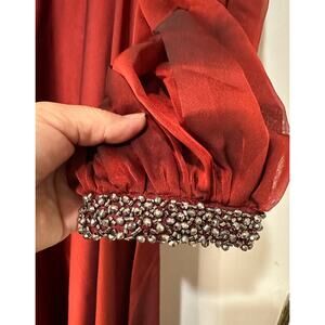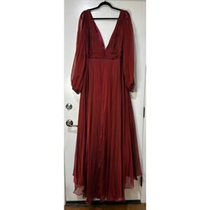 Mac Duggal Red Chiffon Open Sleeve A Line Gown Garnet Size 14 NWT 67414 Romantic