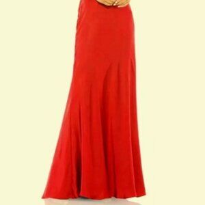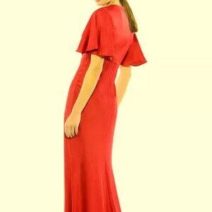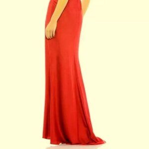 Mac Duggal Red Flounce Sleeve Satin Trumpet Gown