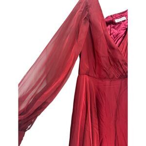 Mac Duggal Red Sheer Blouson Sleeve Surplice Gown 67873 - Size 18 - NWT