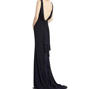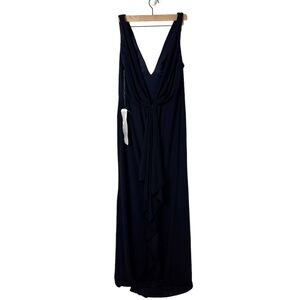 Mac Duggal Ruched Deep V Neck Gown Sleeveless Dress Leg Slit Navy Blue Size 12