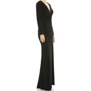Mac Duggal Ruched Jersey Long Sleeve Column Gown Black - 6
