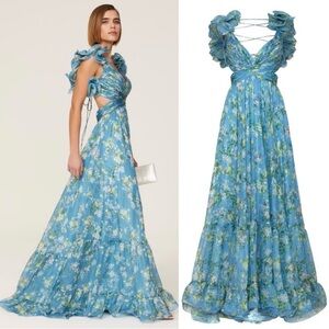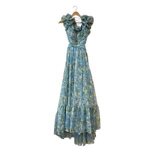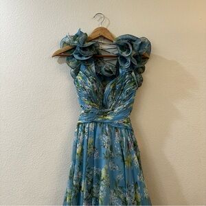 Mac Duggal Ruffle Tiered Floral Cutout Chiffon Gown Size 0 Blue Lace Up