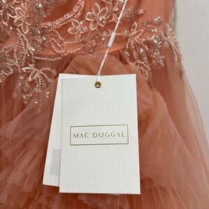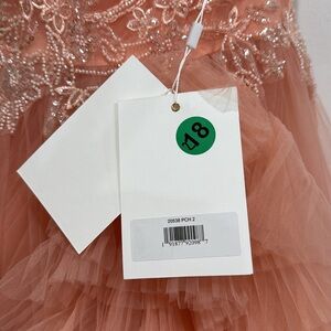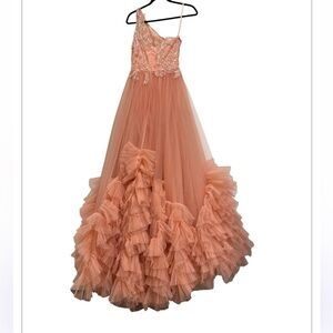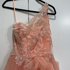 Mac Duggal SAMPLE Peach Tulle One Shoulder Beaded Dress Size 2