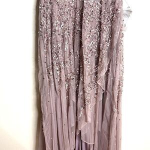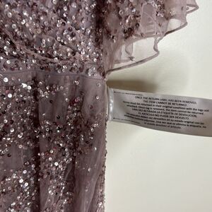 Hand-sequined mesh overlay; 100% polyester lining