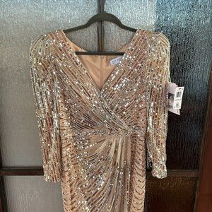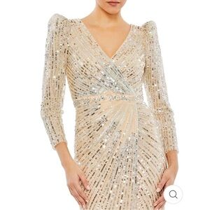Mac Duggal SEQUINED V NECK PUFF SLEEVE GOWN size 10 sold out size NEW $598