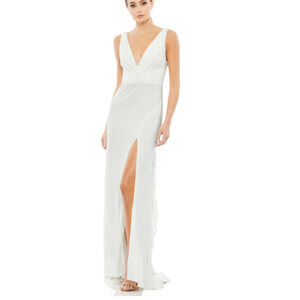 White Sleeveless V-neck Jersey Gown