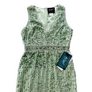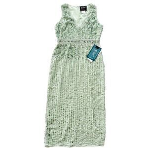 Mac Duggal Sage Green Full Bead Sequin Midi Dress Size 6 NEW #93606 Wedding Prom