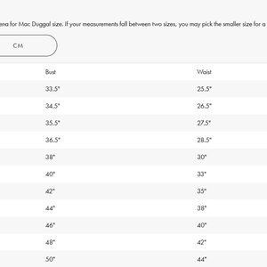 This dress is a size 2; however, Mac Duggal tends to run a little bit big, IMO - so it probably will also fit a size up. Please see the attached size chart.