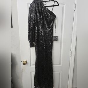 Mac Duggal Sequin Asymmetrical One Long Bishop Sleeve Sheath Gown 26717 SZ 0 NWT