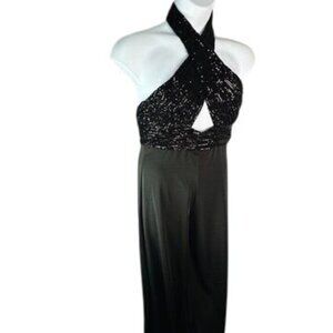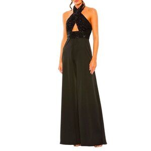 Mac Duggal Sequin Bodice Halter Wide Leg Formal Jumpsuit Open Back Size 6 NWT