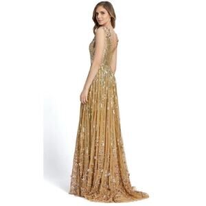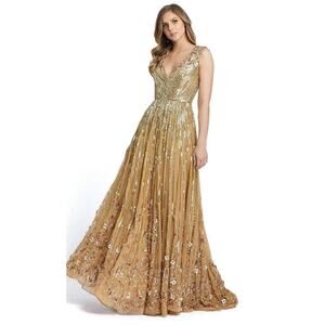 Mac Duggal Sequin Floral Embellished Evening Gown Gold Size 10 NWT