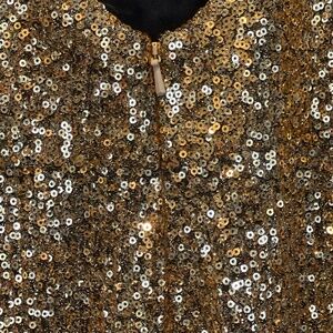 Stunning full-length gown covered in gold sequins with a deep V-neckline, low scoop back, and thigh-high slit. Elegant and glamorous — perfect for galas, weddings, or New Year’s Eve! Never worn, tags still attached.