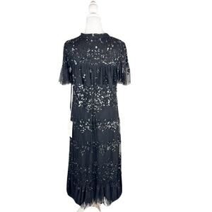 Mac Duggal Sequin High Neck Midi Dress Flutter Sleeve Black Size 12 NWT