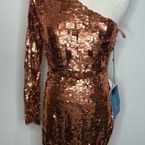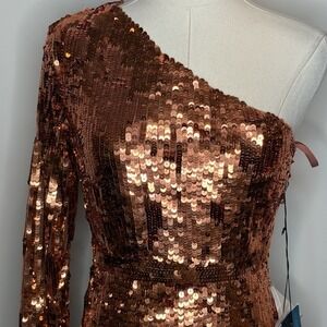 NWT - Mac Duggal Sequin One-Shoulder Long Sleeve Cooper Column Gown Womens Size 2
