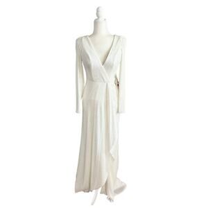 Mac Duggal Sequin Wrap Evening Gown 4 White NWT