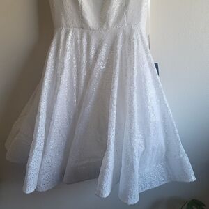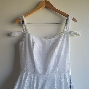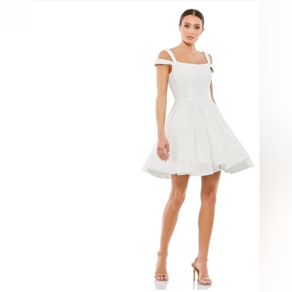 Mac Duggal, Sequined Cut Out Shoulder Skater Dress, Whit Sequins, Size 6, NWT.