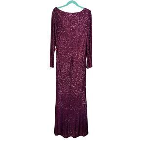 Mac Duggal Sequined Faux Wrap Long Sleeve Column Gown 26574 Wine 10 NWT