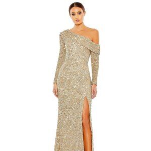 Mac Duggal Sequined One Shoulder Evening Gown Simmering Gold Size 2 Formal