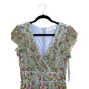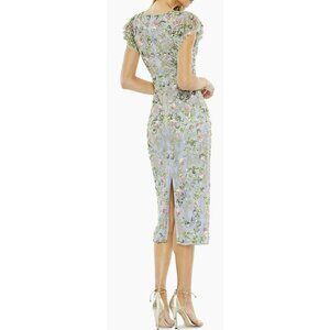 Mac Duggal Sequins Beaded Embellished Cap-Sleeve Midi Dress Sz 6