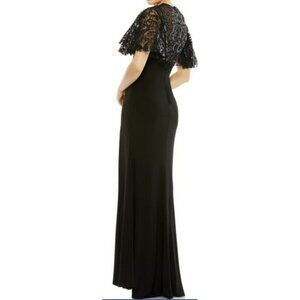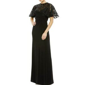 Mac Duggal Sequins Jersey Flutter Sleeve Formal Gown Maxi Dress Sz 10 NWT