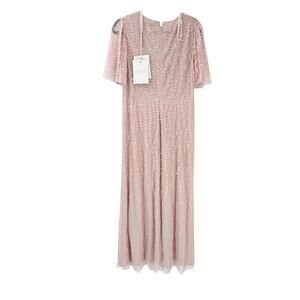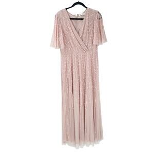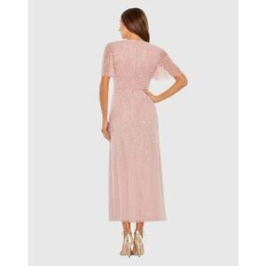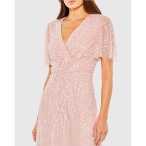 Mac Duggal Sheer Flutter Sleeve V-Neck Formal Wrap Dress Rose Pink Size 12 NWT