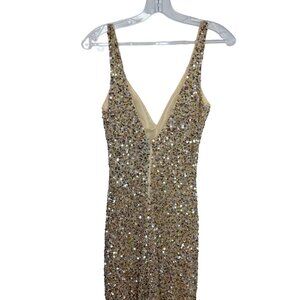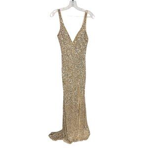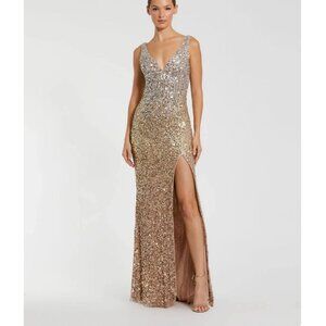 Mac Duggal Shimmering Gold Sequin Slit Gown #1068 NWT - Size 0
