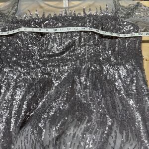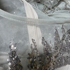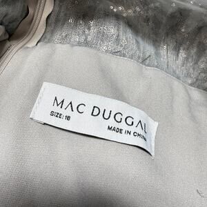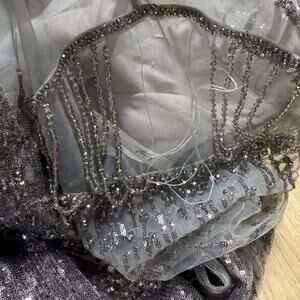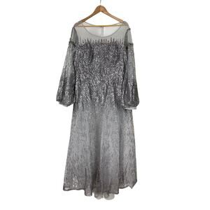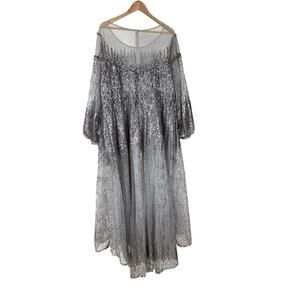 Mac Duggal Silver Jewel Encrusted Illusion Long Sleeve A Line Gown Size 18 *FLAW