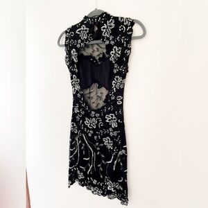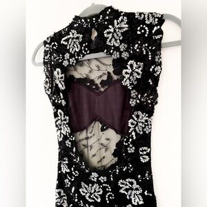 Mac Duggal Silver Sequin Cutout Mini Dress Bodycon SZ XS Party Black Lace Dress