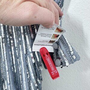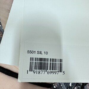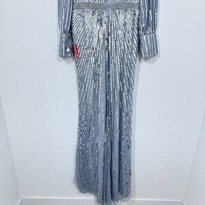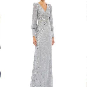 Mac Duggal Silver Sequin Long Sleeve V Neck Elegant Evening Gown Black Tie 10