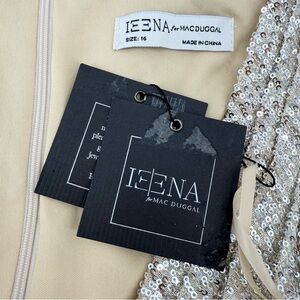 Dazzle in this Mac Duggal Silver Sequin Wrap Waist Gown, brand new with tags in size 16. This floor-length, fully lined gown features a plunging V-neckline, faux wrap waist detail, and a dramatic thigh-high slit for a modern, elegant silhouette. Crafted with shimmering sequin mesh over a nude lining, it’s perfect for formal events, weddings, galas, or red-carpet nights.