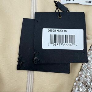 Mac Duggal Silver Sequin V Neck Wrap Gown Nude Formal Evening Dress 16 NWT