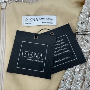 Dazzle in this Mac Duggal Silver Sequin Wrap Waist Gown, brand new with tags in size 24. This floor-length, fully lined gown features a plunging V-neckline, faux wrap waist detail, and a dramatic thigh-high slit for a modern, elegant silhouette. Crafted with shimmering sequin mesh over a nude lining, it’s perfect for formal events, weddings, galas, or red-carpet nights.