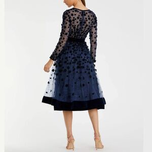 Mac Duggal Size 10 Dark Navy Blue 3D Floral High Neck Long Sleeve Midi Dress