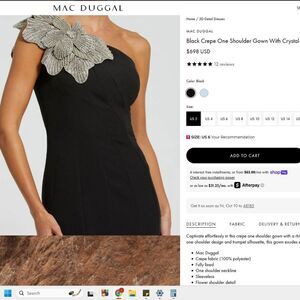 Mac Duggal Size 14 Black Crepe One Shoulder Crystal Flower Long Maxi Dress Gown