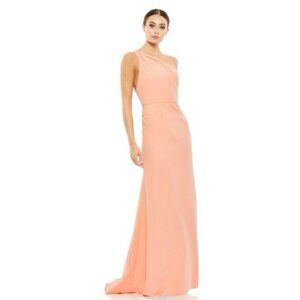 Mac Duggal Size 14 Peach 26266 One-Shoulder Jersey Mermaid Cocktail Gown Dress